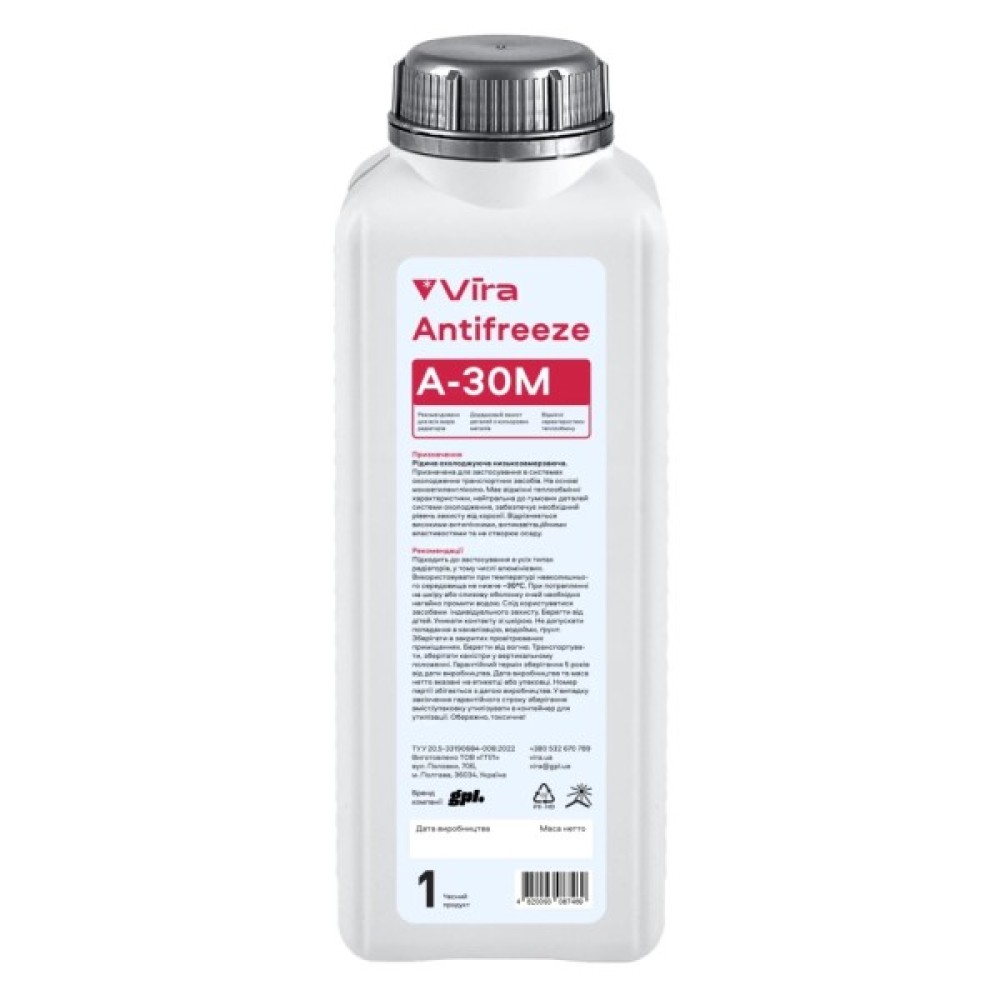 Антифриз VIRA А-30М демонструє відмінні теплообмінні характеристики та має високу стійкість до утворення піни та кавітації. Особлива формула продукту нейтральна до гумових деталей автомобільної системи охолодження, забезпечуючи захист від корозії та довговічність деталей.