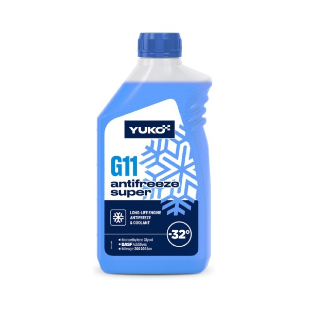 Антифриз Yuko -32 Super G11 синій – це високоякісна охолоджуюча рідина, призначена для ефективного захисту сучасних бензинових і дизельних двигунів. Завдяки класу G11, вона забезпечує відмінну продуктивність навіть у найсуворіших умовах експлуатації. Продукт готовий до використання та має температуру замерзання -32 °C, що гарантує надійний захист мотора взимку.