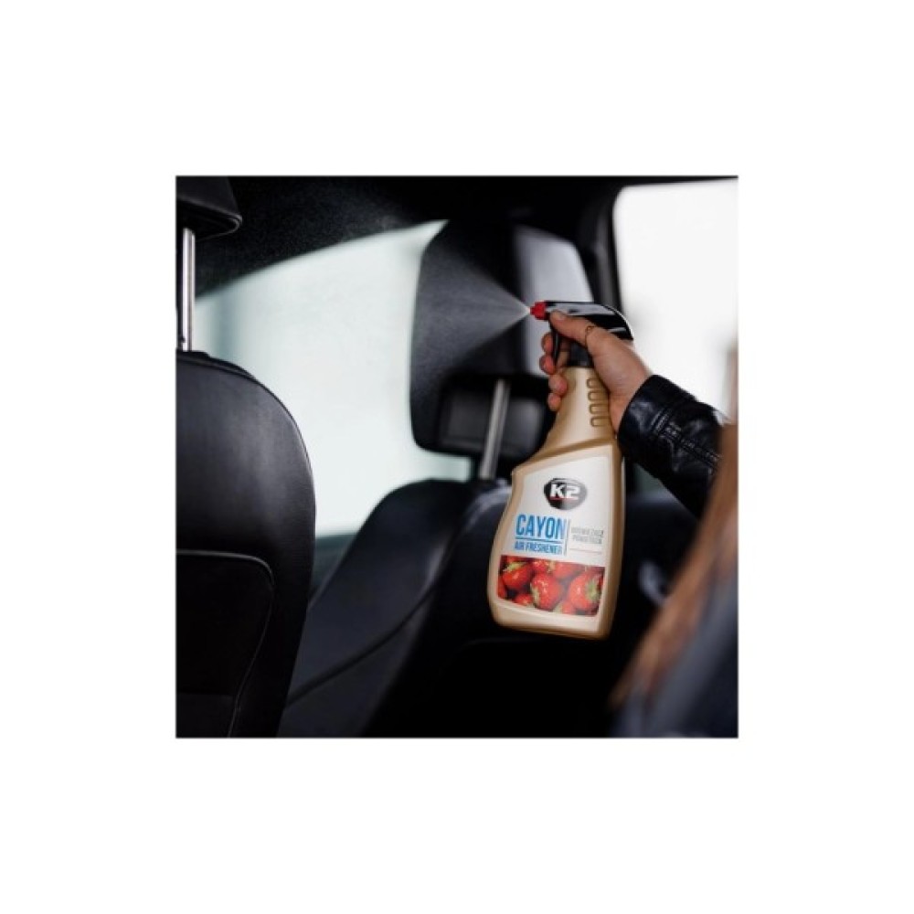 Цей автомобільний освіжувач повітря дуже простий у використанні. Просто використовуйте невелику кількість продукту, щоб отримати швидке та ефективне освіження. Для довготривалого ефекту можна нанести спрей на елементи оббивки. У разі такого застосування рекомендується перевірити роботу на невеликій площі. K2 Cayon точно вам сподобається.