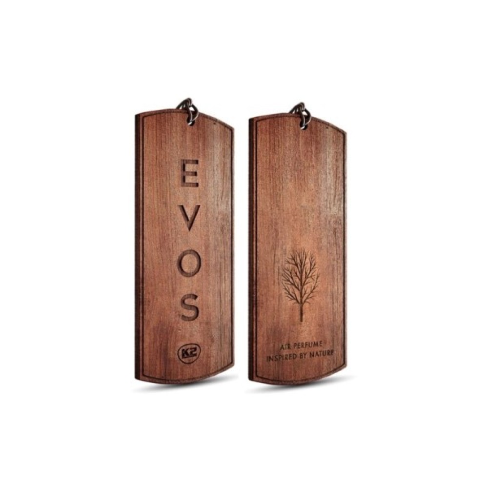 K2 Evos ― незвичайний автомобільний освіжувач повітря у формі дерев'яної підвіски, натхненний природою. Унікальна форма легендарної жетонки прикрашає салон автомобіля і надає йому елегантності.