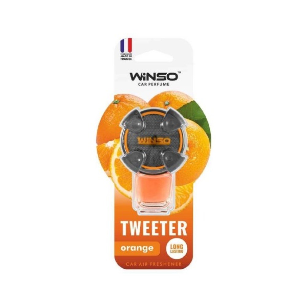 WINSO Tweeter Orange 8мл (531770) - Стильний, яскравий і сучасний ароматизатор з чудовим ароматом. Призначений для установки на решітку вентиляції - дефлектор. WINSO Tweeter гарантує рівномірний розподіл аромату по всьому салону автомобіля за рахунок виходить з решітки вентиляції потоку повітря. Спеціальна мембранна система запобігає витоку ароматичної рідини при русі по пересіченій місцевості, а також сприяє економічній витраті - ароматизатора вистачить на кілька місяців безперервного використання. Парфумерна композиція зроблена у Франції, на основі натуральних гіпоалергенних інгредієнтів, завдяки чому освіжувач повітря не викликає проблем зі здоров'ям. WINSO Tweeter ефективно нейтралізує сторонні запахи і забезпечує високий ступінь комфорту навіть в самих довгих і утомливих поїздках.