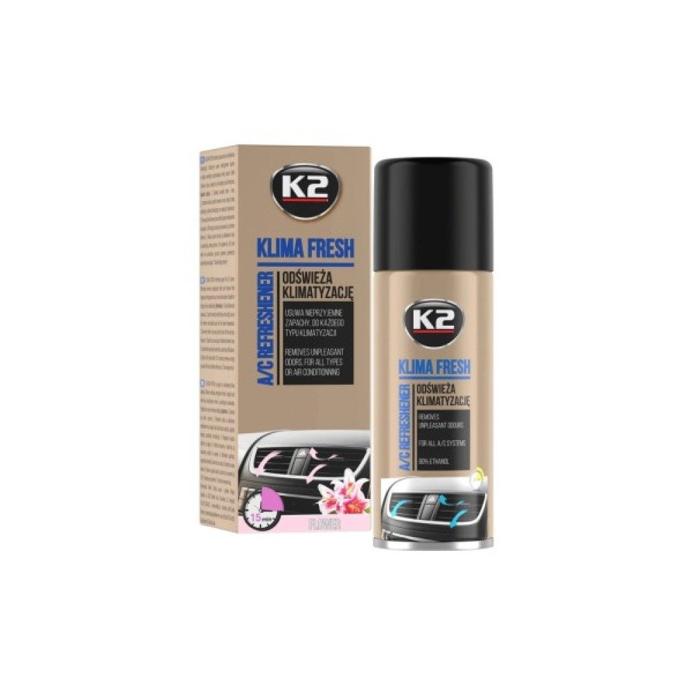 Очищувач каналів системи вентиляції в формі аерозолю з автоматичним розпиленням і вираженою дезінфікуючою дією. Klima Fresh K222FL 150 мл швидко і якісно дозволяє позбутися від забруднень і хвороботворних бактерій, що знаходяться в системі кондиціонування, які виділяють сторонні запахи і можуть стати причиною погіршення здоров'я. Засіб має приємний аромат, який, після очищення, зберігається на тривалий період.