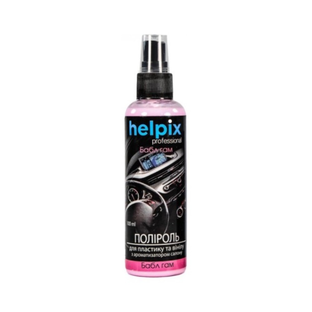 Набір Helpix Поліроль для пластику Бабл Гам 100 мл + губка HELPIX - Засіб, ефективно очищає і поліруючий пластмасові, дерев'яні, гумові і вінілові деталі салону або кузова. Володіє яскравим і приємним ароматом Bubble Gum (жуйка), який виступає в ролі освіжувача повітря, здатного усунути сторонні запахи і наповнити повітря в салоні приємним ароматом.