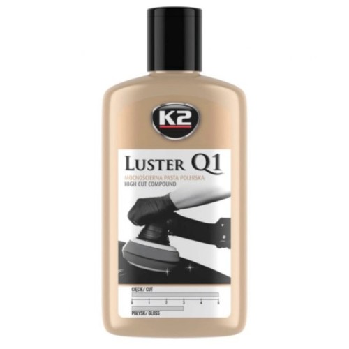 K2 Luster паста для машинного полірування фарби та багатьох інших поверхонь. Рекомендовано для використання в автомобільній та виробничій промисловості. Швидко видаляє дуже великі подряпини та усуває дефекти від сильно пошкоджених фарб. Під час роботи виділяє мало тепла, тому не перегріває поверхню.