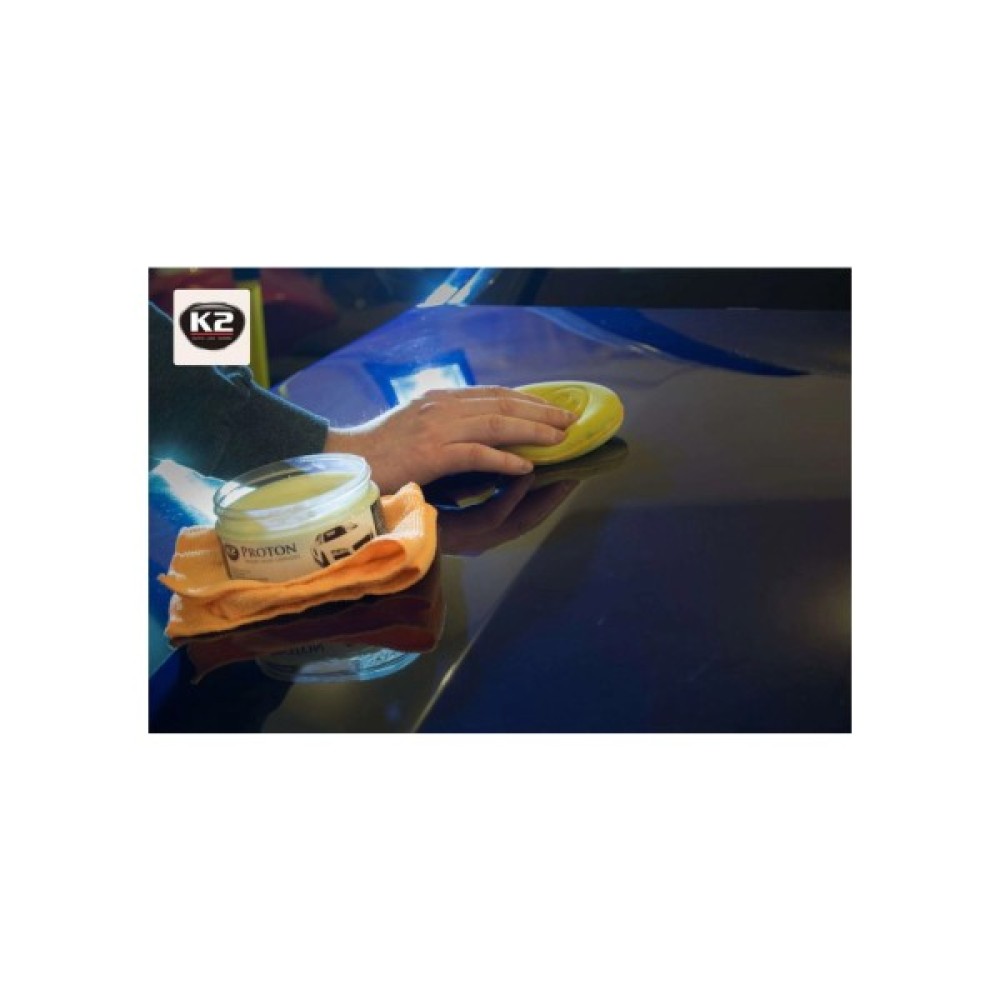 Поліроль K2 PROTON з губкою і ганчіркою G040 200г - ваш надійний супутник для підтримання чудового зовнішнього вигляду вашого автомобіля і забезпечення йому довготривалого захисту.