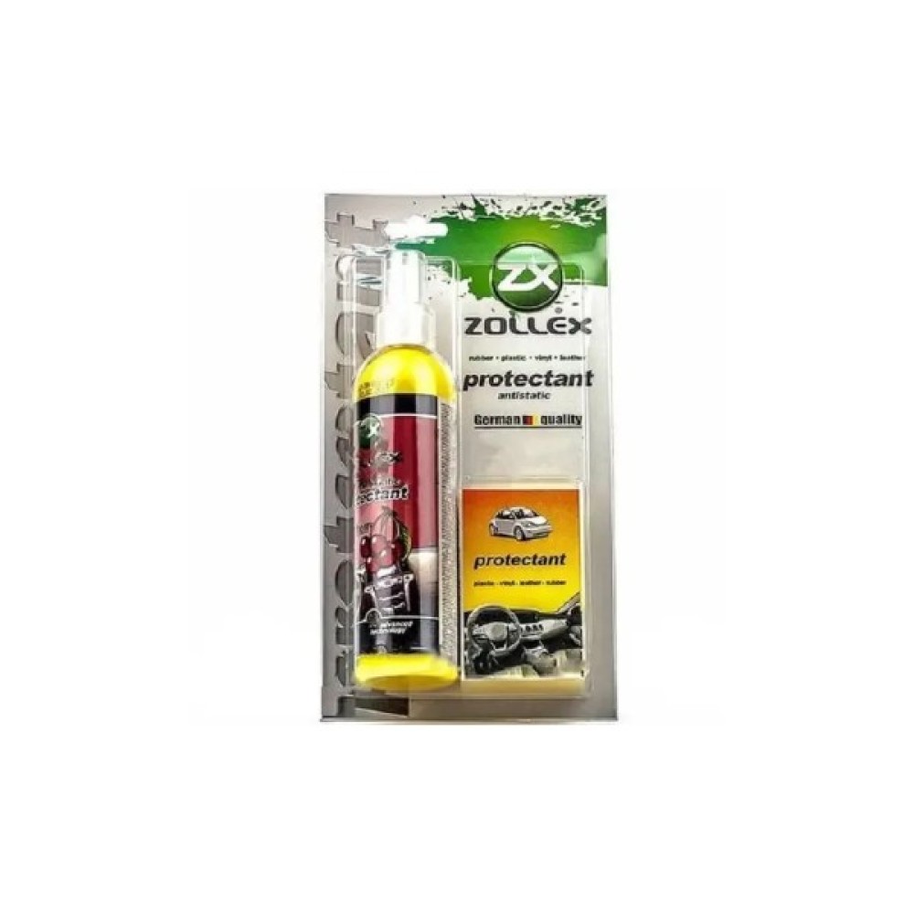 Поліроль для пластику Zollex тригер представлений ароматизованою рідиною у зручній формі спрею у пластиковій пляшці, об'ємом 240мл. У комплект до поліролю додається губка.