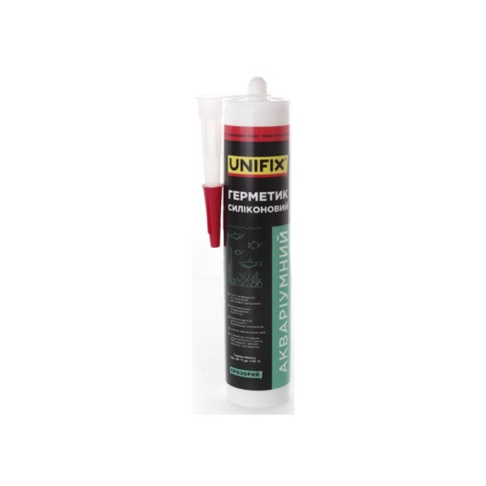 Unifix - Однокомпонентний універсальний силіконовий кислотний герметик, що твердіє при взаємодії з вологою при кімнатній температурі і формує гнучкий еластичний продукт. Широко застосовується в будівництві і склінні. Легко наноситься і забезпечує відмінну адгезію до непористих поверхонь, таких як скло, глазурована керамічна плитка, алюміній, пластик, цегла та інші. Стійкий до озону, УФ-радіації і екстремальних температур. Призначений для використання зі спеціальним пістолетом для герметиків.
