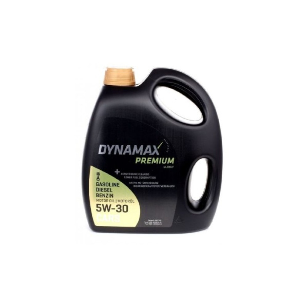Особливістю DYNAMAX PREMIUM ULTRA F є активне очищення двигуна: масло ефективно видаляє нагар і сажеві відкладення, зберігаючи систему мастила у чистоті. Олива формує захисну плівку для деталей двигуна, запобігаючи зносу і корозії навіть під час холодного запуску.
