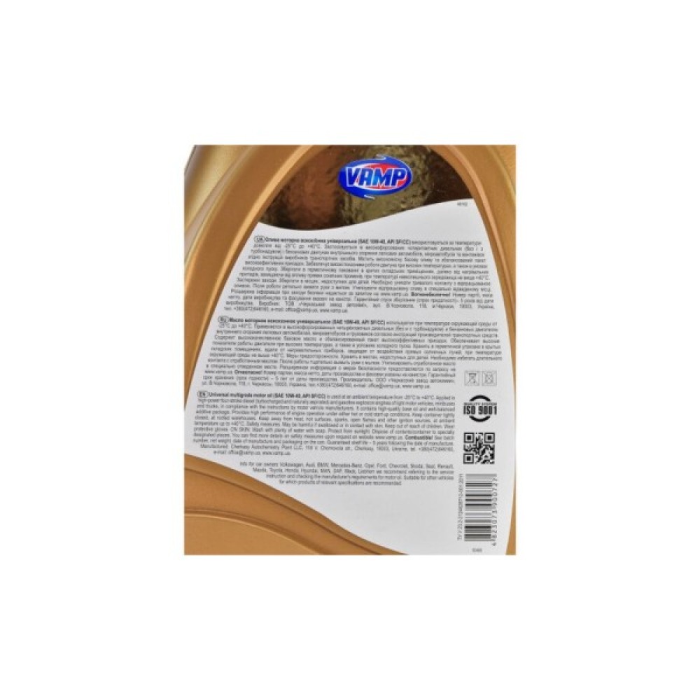 Моторна олива ВАМП 10W40 ULTRA SF/CC об’ємом 4 літри — це високоякісний продукт, призначений для застосування у високооборотних чотиритактних дизельних і бензинових двигунах легкових та вантажних автомобілів. Основою цієї оливи є синтетична база, що сприяє високим експлуатаційним показникам і ефективному захисту двигуна від зношування.
