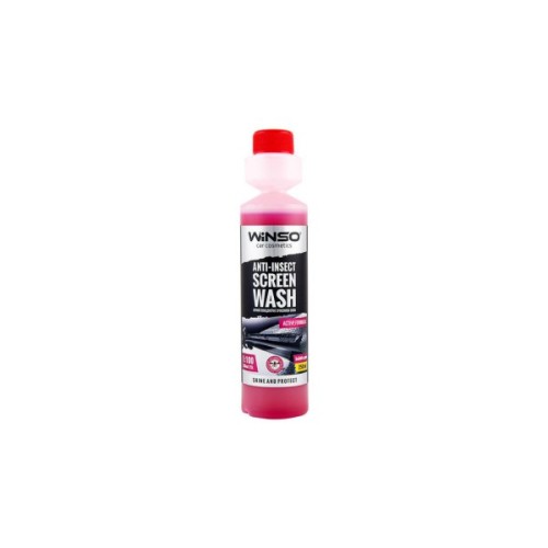 Омивач літній Winso Anti-Insect Screen Wash bubbble gum 825001 250мл концентрований засіб для системи очищення скла і фар. Без труднощів справляється з будь-якими забрудненнями скляних поверхонь, зокрема з жирними, липкими і застарілими. Не пошкоджує лакофарбовий шар, гумові та пластмасові деталі кузова. Після обробки утворює на поверхні прозору захисну плівку, яка запобігає осіданню пилу і зберігає скло в чистоті на тривалий період.