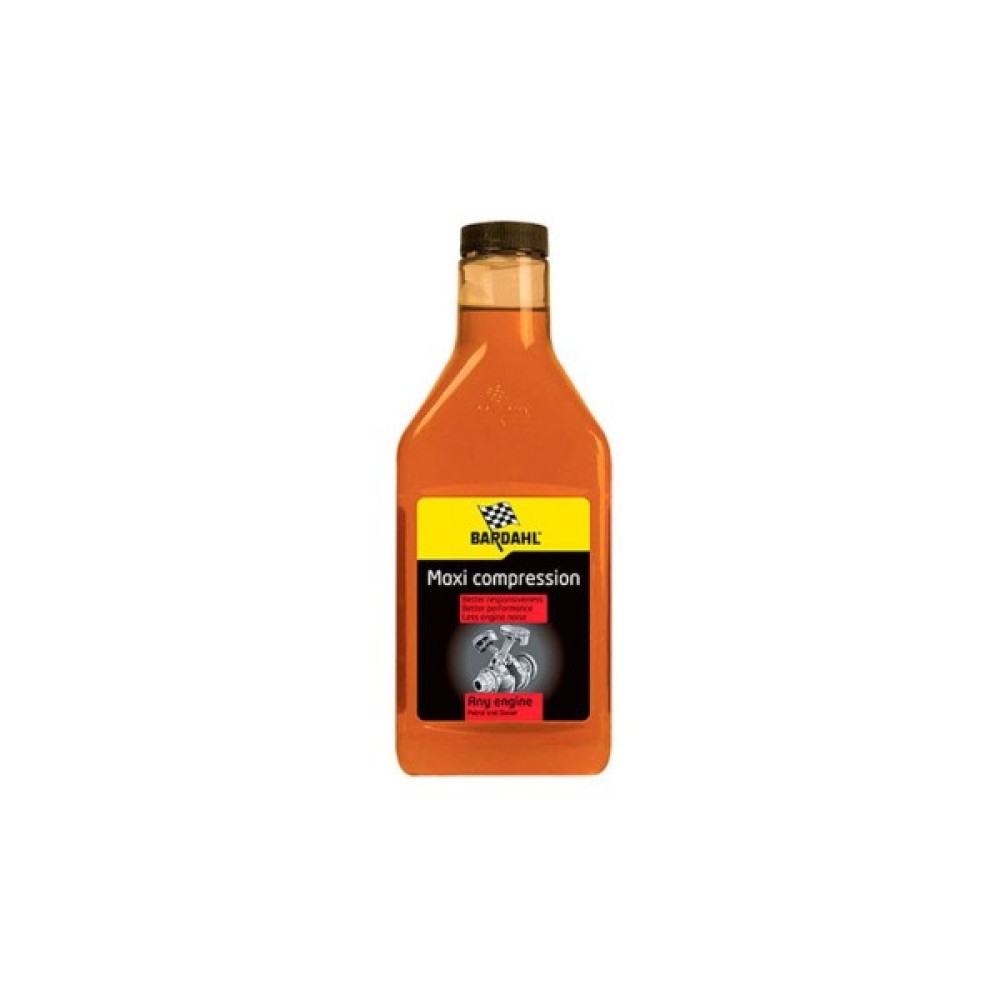 Maxi Compression – присадка в моторну оливу, призначена для покращення вязкісних характеристик моторних масел при високих температурах, а також для відновлення компрессії двигуна. Покращує в'язкісні характеристики моторних масел при робітниках та високих температурах. Відновлює компрессію двигуна. Знижує витрату моторного масла і зменшує кількість кипяті у вихлопних газах. Відновлює еластичність прокладок і з'єднань, що висихають через сильний перепад температур. Забезпечує ефективну захист елементів двигуна від окислення та знесення. Покращує параметри роботи двигуна, знижує шум при роботі. Усуває течі олії. Безпечний для каталізаторів і не забиває масляні фільтри.