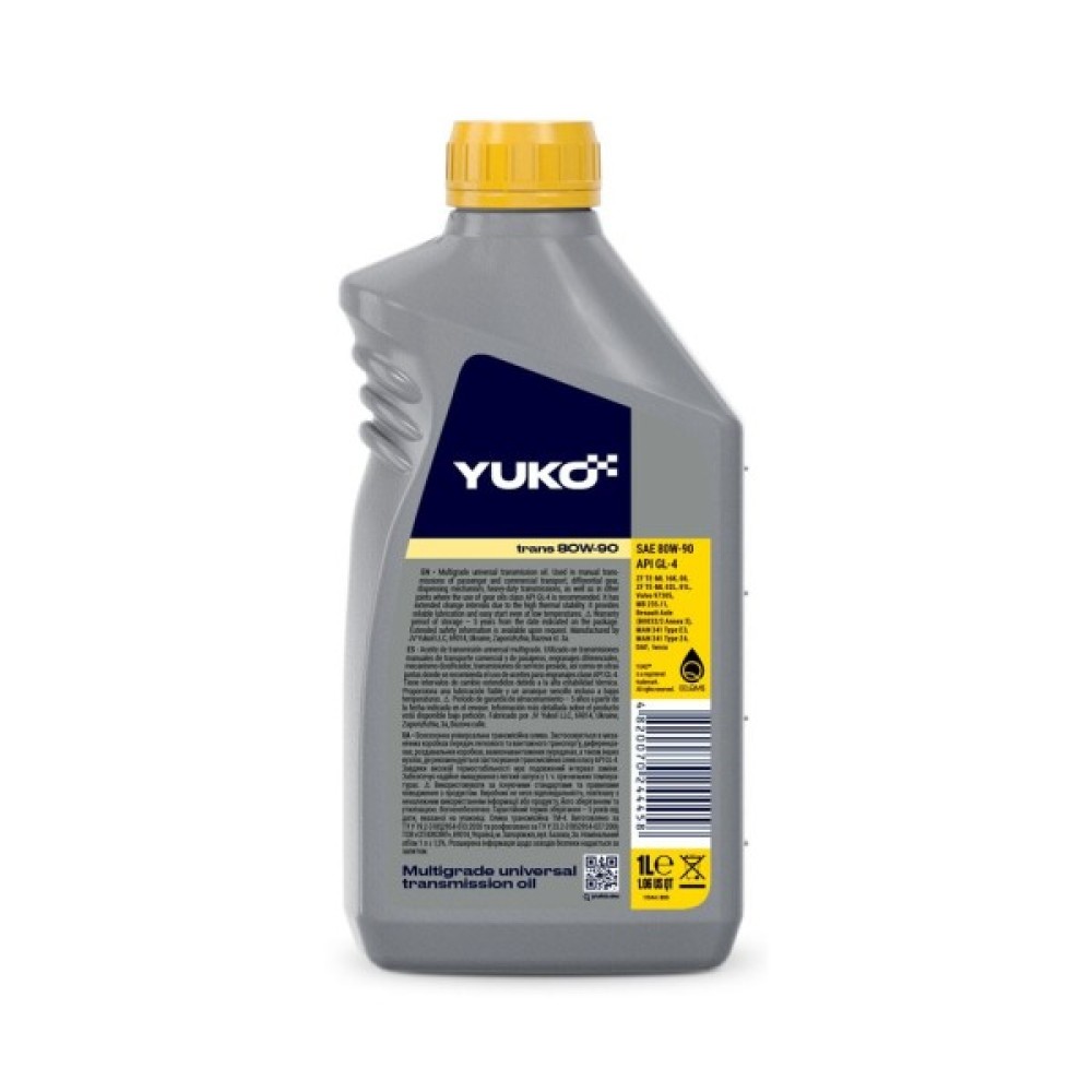 Yuko TRANS 80W-90 GL-4 - Застосовується в механічних коробках передач легкового та вантажного транспорту, диференціалах, роздавальних коробках, важко навантажених передачах, а також в інших вузлах, де рекомендується використовувати оливи класу API GL-4.
