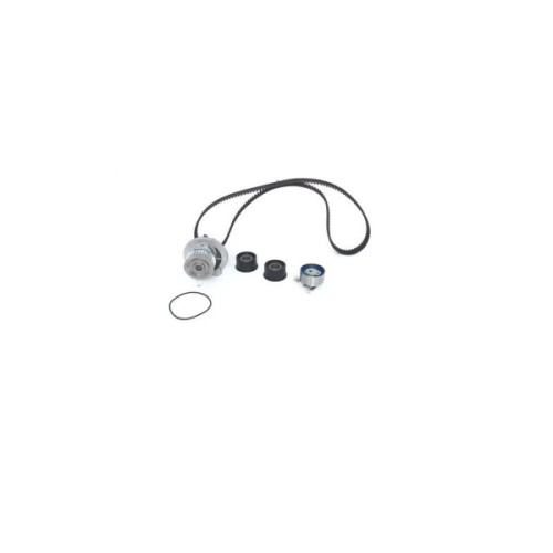 Ремінь ГРМ - є одним з основних складових елементів газорозподільного механізму автомобіля, що відповідає за передачу обертання від колінчастого до розподільного валу, для введення/виведення безпосередньо повітряно-паливної суміші / вихлопних газів. З часом ремінь ГРМ може зношуватися, що може привести до неполадок ГРМ, або до більш серйозного ремонту двигуна при його обриві. З цієї причини, контроль стану та своєчасна заміна ременя ГРМ вкрай необхідна. Комплект ременя ГРМ з водяним насосом Bosch 1 987 948 885 дозволить замінити зношений ремінь ГРМ, забезпечуючи більш ефективну передачу обертання між розподілвалом і колінчастим валом, а також більш стабільну роботу газорозподільного механізму автомобіля. Всі елементи виконані з високоякісних матеріалів, забезпечуючи тривалий термін експлуатації деталі. Ремінь ГРМ має кількість зубців 169 шт. Довжина становить 1352 мм. Ширина дорівнює 24 мм. У комплектацію входить: 1 натяжний ролик, 2 паразитних/провідних роликів.
