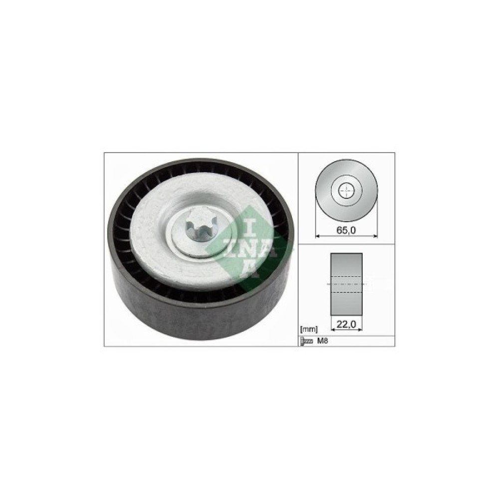 Натяжний ролик ременя поліклинового (приводного) INA 532 0667 10 дозволить зробити заміну зношеної/зламаної деталі, поліпшити ступінь натягу ременя, а також стабільність роботи приводу ГРМ та двигуна автомобіля. Всі деталі ролика виконані з матеріалів, високої якості, що дозволить забезпечити тривалий термін експлуатації деталі. Зовнішній діаметр становить 65 мм. Деталь має висоту 22 мм.