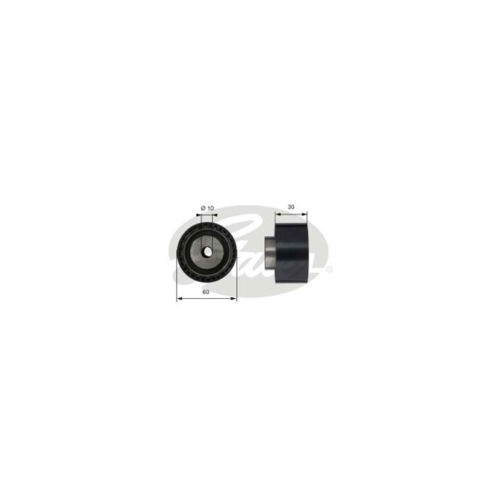 Обвідний ролик зубчастого ремня (ГРМ) GATES T42070 дозволить зробити заміну зношеної/зламаної деталі, поліпшити ступінь натягу ременя, а також стабільність роботи приводу ГРМ та двигуна автомобіля. Всі деталі ролика виконані з матеріалів, високої якості, що дозволить забезпечити тривалий термін експлуатації деталі. Зовнішній діаметр становить 60 мм. У той же час внутрішній діаметр дорівнює 10 мм. Деталь має висоту 30 мм.