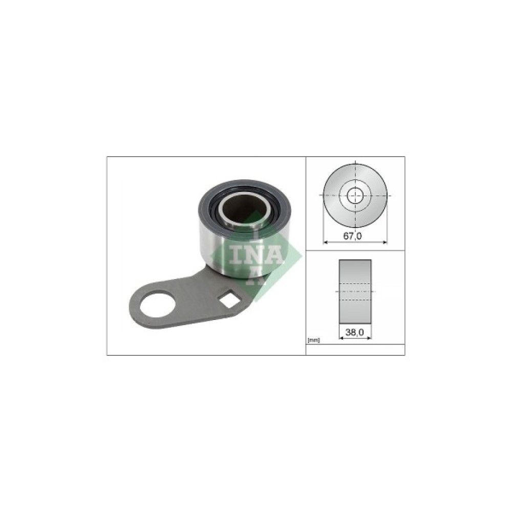 Натяжний ролик зубчастого ременя (ГРМ) INA 531 0331 10 дозволить зробити заміну зношеної/зламаної деталі, поліпшити ступінь натягу ременя, а також стабільність роботи приводу ГРМ та двигуна автомобіля. Всі деталі ролика виконані з матеріалів, високої якості, що дозволить забезпечити тривалий термін експлуатації деталі. Зовнішній діаметр становить 67 мм. Деталь має висоту 38 мм.