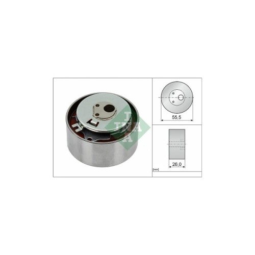 Натяжний ролик зубчастого ременя (ГРМ) INA 531 0778 10 дозволить зробити заміну зношеної/зламаної деталі, поліпшити ступінь натягу ременя, а також стабільність роботи приводу ГРМ та двигуна автомобіля. Всі деталі ролика виконані з матеріалів, високої якості, що дозволить забезпечити тривалий термін експлуатації деталі. Зовнішній діаметр становить 55.5 мм. Деталь має висоту 26 мм.
