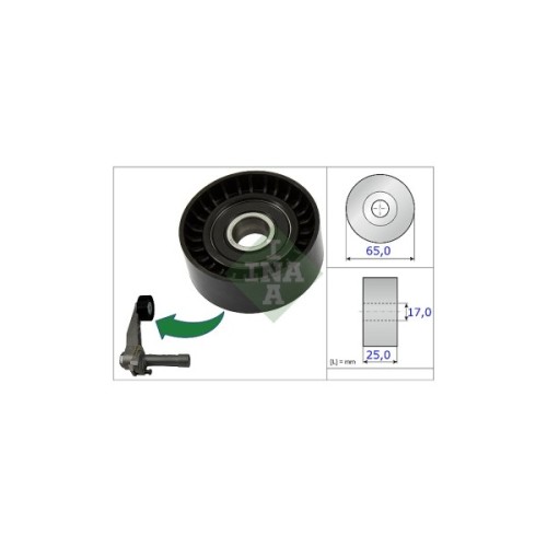 Натяжний ролик ременя поліклинового (приводного) INA 531 0866 10 дозволить зробити заміну зношеної/зламаної деталі, поліпшити ступінь натягу ременя, а також стабільність роботи приводу ГРМ та двигуна автомобіля. Всі деталі ролика виконані з матеріалів, високої якості, що дозволить забезпечити тривалий термін експлуатації деталі. Зовнішній діаметр становить 65 мм. Деталь має висоту 25 мм.