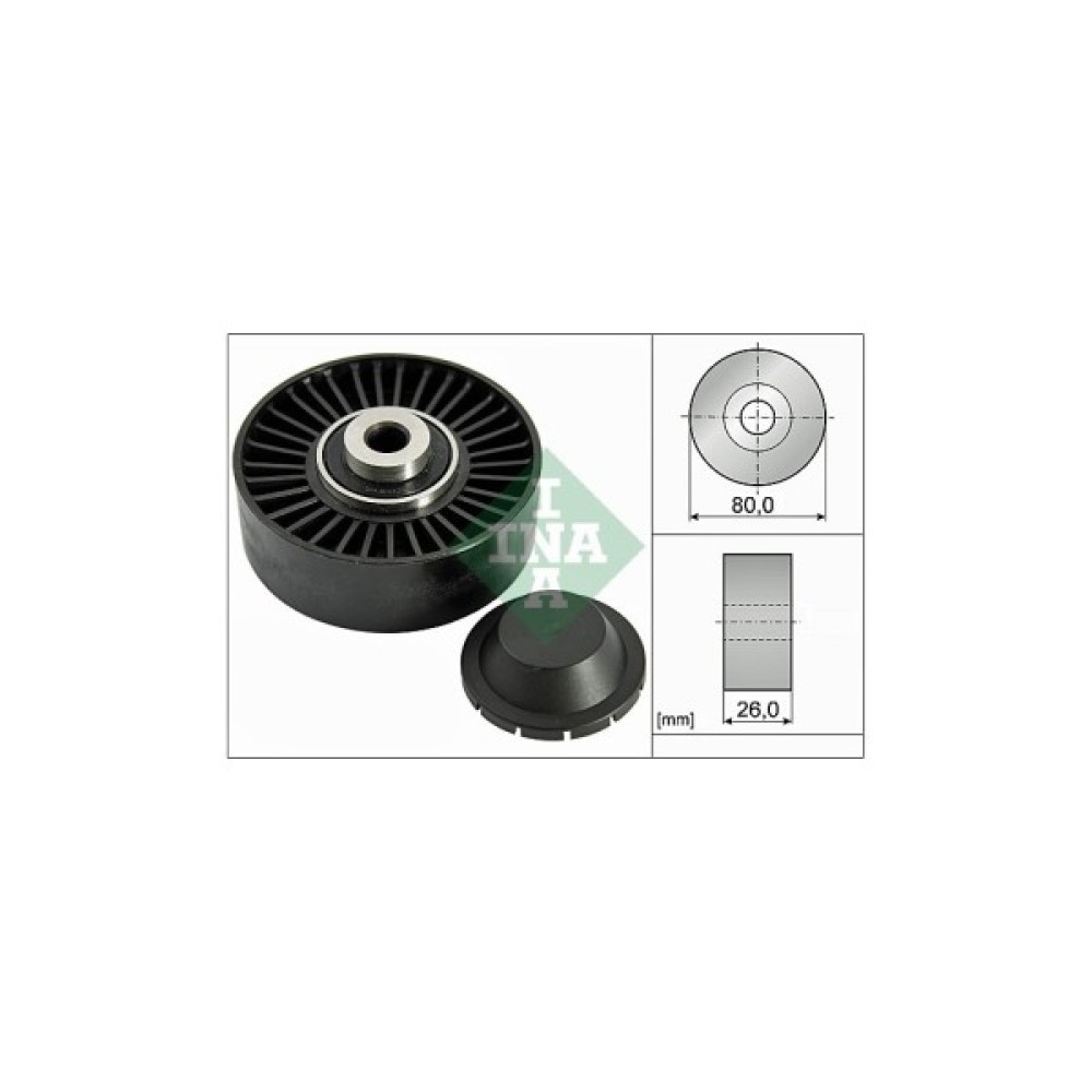 Натяжний ролик ременя поліклинового (приводного) INA 532 0370 20 дозволить зробити заміну зношеної/зламаної деталі, поліпшити ступінь натягу ременя, а також стабільність роботи приводу ГРМ та двигуна автомобіля. Всі деталі ролика виконані з матеріалів, високої якості, що дозволить забезпечити тривалий термін експлуатації деталі. Зовнішній діаметр становить 80 мм. Деталь має висоту 26 мм.