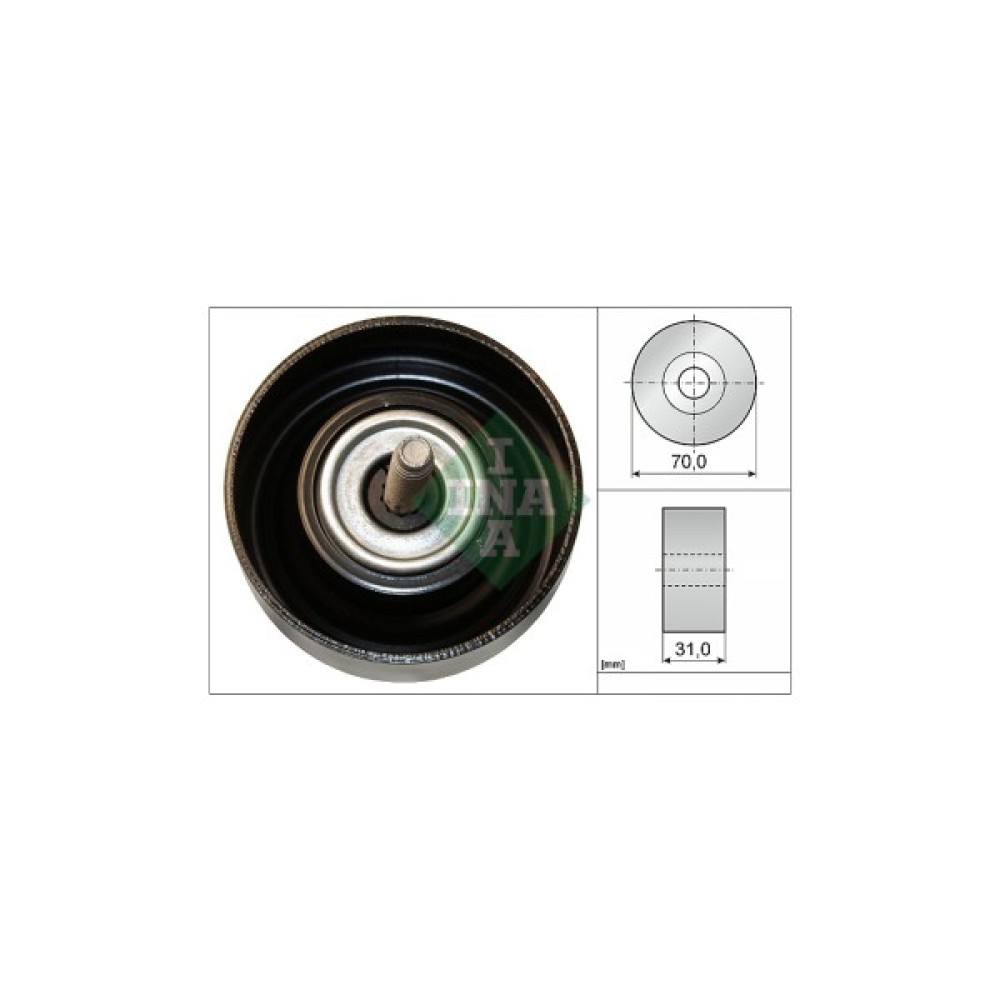 Натяжний ролик ременя поліклинового (приводного) INA 532 0614 10 дозволить зробити заміну зношеної/зламаної деталі, поліпшити ступінь натягу ременя, а також стабільність роботи приводу ГРМ та двигуна автомобіля. Всі деталі ролика виконані з матеріалів, високої якості, що дозволить забезпечити тривалий термін експлуатації деталі. Зовнішній діаметр становить 70 мм. Деталь має висоту 31 мм.