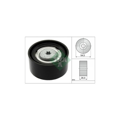 Натяжний ролик ременя поліклинового (приводного) INA 532 0672 10 дозволить зробити заміну зношеної/зламаної деталі, поліпшити ступінь натягу ременя, а також стабільність роботи приводу ГРМ та двигуна автомобіля. Всі деталі ролика виконані з матеріалів, високої якості, що дозволить забезпечити тривалий термін експлуатації деталі. Зовнішній діаметр становить 54 мм. Деталь має висоту 26 мм.