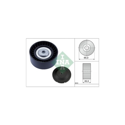 Натяжний ролик ременя поліклинового (приводного) INA 532 0804 10 дозволить зробити заміну зношеної/зламаної деталі, поліпшити ступінь натягу ременя, а також стабільність роботи приводу ГРМ та двигуна автомобіля. Всі деталі ролика виконані з матеріалів, високої якості, що дозволить забезпечити тривалий термін експлуатації деталі. Зовнішній діаметр становить 65 мм. Деталь має висоту 26 мм.