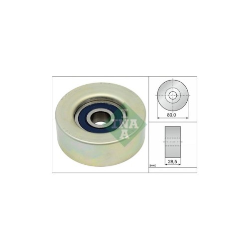 Обвідний ролик зубчастого ремня (ГРМ) INA 532 0873 20 дозволить зробити заміну зношеної/зламаної деталі, поліпшити ступінь натягу ременя, а також стабільність роботи приводу ГРМ та двигуна автомобіля. Всі деталі ролика виконані з матеріалів, високої якості, що дозволить забезпечити тривалий термін експлуатації деталі. Зовнішній діаметр становить 80 мм. Деталь має висоту 28.5 мм.