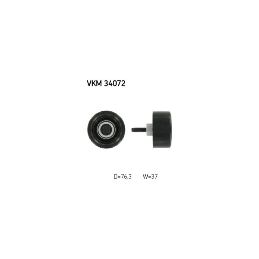 Обвідний ролик ременя поліклинового (приводного) SKF VKM 34072 дозволить зробити заміну зношеної/зламаної деталі, поліпшити ступінь натягу ременя, а також стабільність роботи приводу ГРМ та двигуна автомобіля. Всі деталі ролика виконані з матеріалів, високої якості, що дозволить забезпечити тривалий термін експлуатації деталі. Зовнішній діаметр становить 76.3 мм. Деталь має висоту 37 мм.
