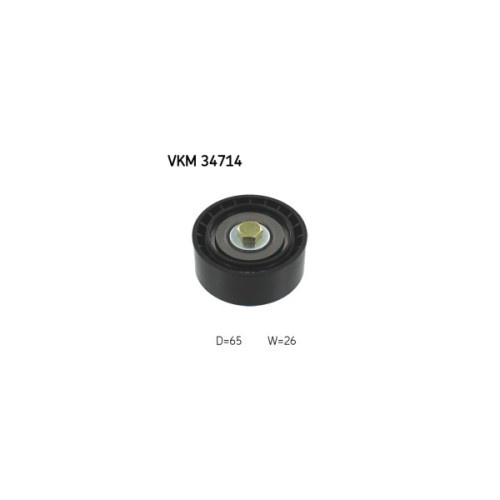 Натяжний ролик ременя поліклинового (приводного) SKF VKM 34714 дозволить зробити заміну зношеної/зламаної деталі, поліпшити ступінь натягу ременя, а також стабільність роботи приводу ГРМ та двигуна автомобіля. Всі деталі ролика виконані з матеріалів, високої якості, що дозволить забезпечити тривалий термін експлуатації деталі. Зовнішній діаметр становить 65 мм. Деталь має висоту 26 мм.