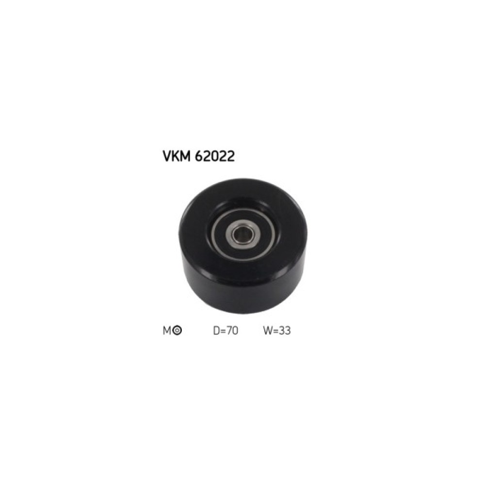 Натяжний ролик ременя поліклинового (приводного) SKF VKM 62022 дозволить зробити заміну зношеної/зламаної деталі, поліпшити ступінь натягу ременя, а також стабільність роботи приводу ГРМ та двигуна автомобіля. Всі деталі ролика виконані з матеріалів, високої якості, що дозволить забезпечити тривалий термін експлуатації деталі. Зовнішній діаметр становить 70 мм. Деталь має висоту 33 мм.