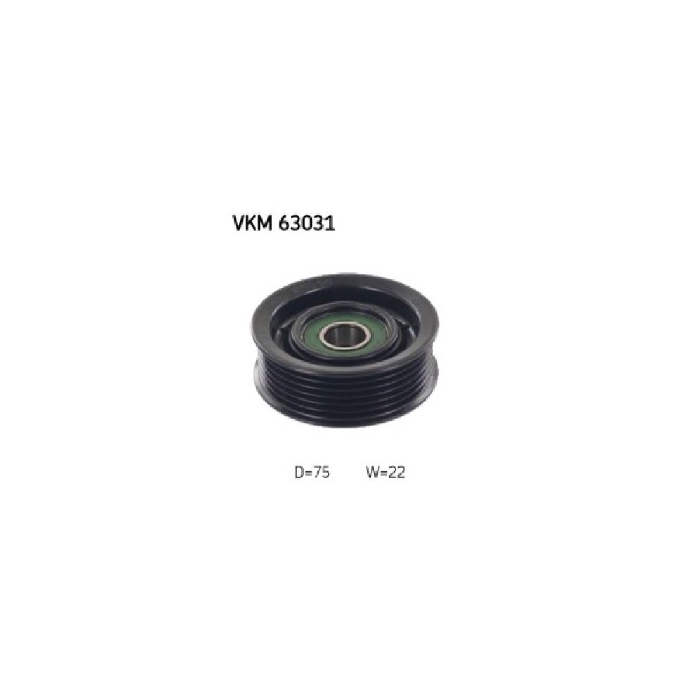 Обвідний ролик ременя поліклинового (приводного) SKF VKM 63031 дозволить зробити заміну зношеної/зламаної деталі, поліпшити ступінь натягу ременя, а також стабільність роботи приводу ГРМ та двигуна автомобіля. Всі деталі ролика виконані з матеріалів, високої якості, що дозволить забезпечити тривалий термін експлуатації деталі. Зовнішній діаметр становить 75 мм. Деталь має висоту 22 мм.