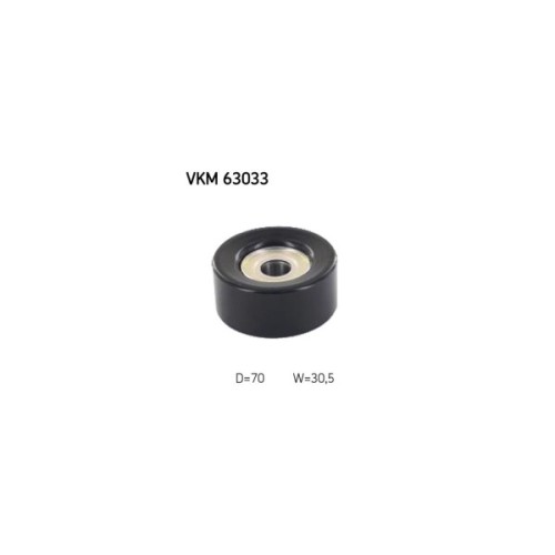 Обвідний ролик ременя поліклинового (приводного) SKF VKM 63033 дозволить зробити заміну зношеної/зламаної деталі, поліпшити ступінь натягу ременя, а також стабільність роботи приводу ГРМ та двигуна автомобіля. Всі деталі ролика виконані з матеріалів, високої якості, що дозволить забезпечити тривалий термін експлуатації деталі. Зовнішній діаметр становить 70 мм. Деталь має висоту 30.5 мм.
