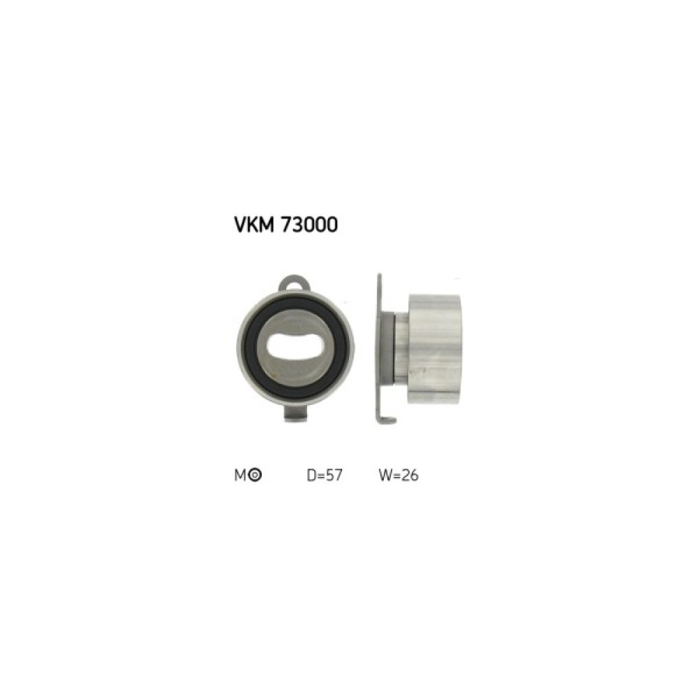 Натяжний ролик зубчастого ременя (ГРМ) SKF VKM 73000 дозволить зробити заміну зношеної/зламаної деталі, поліпшити ступінь натягу ременя, а також стабільність роботи приводу ГРМ та двигуна автомобіля. Всі деталі ролика виконані з матеріалів, високої якості, що дозволить забезпечити тривалий термін експлуатації деталі. Зовнішній діаметр становить 57 мм. Деталь має висоту 26 мм.