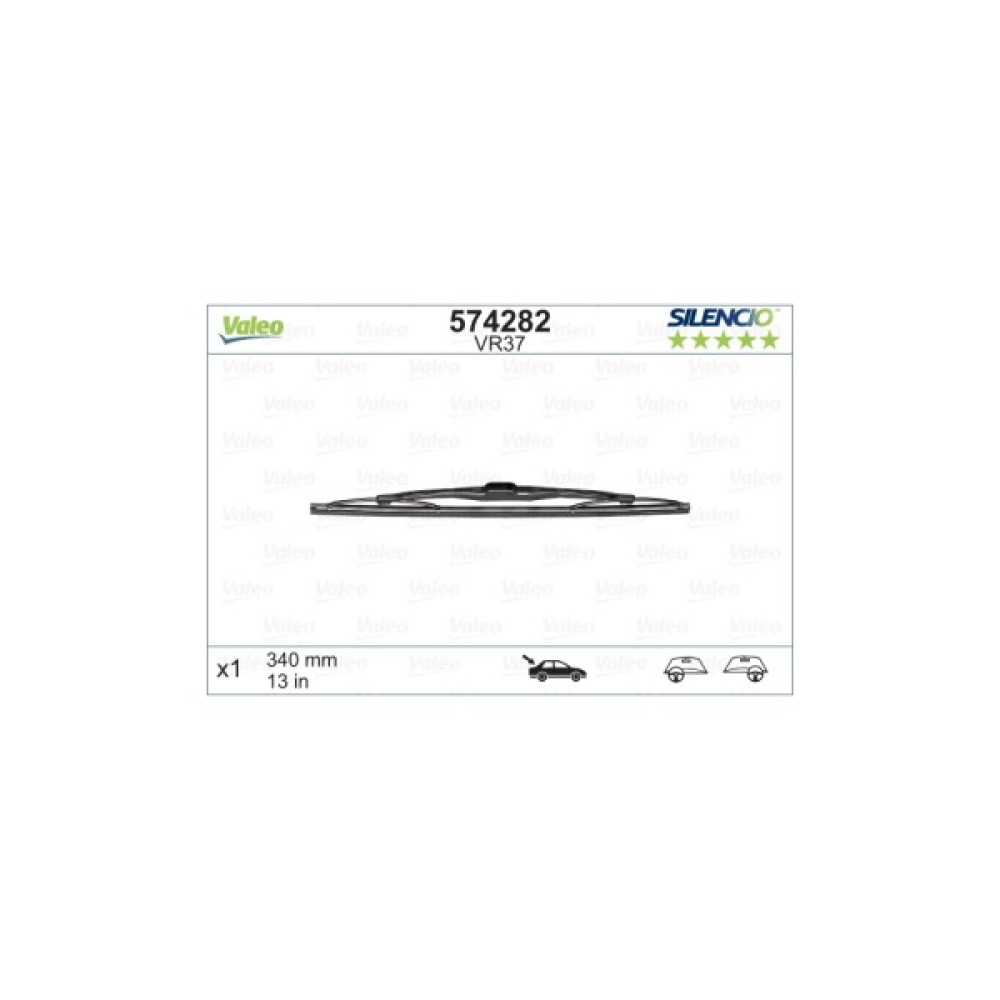 Задній двірник Valeo 574282 340мм не схильний до дії корозійних процесів. Він відрізняється легкістю і міцністю, і забезпечує рівномірний притиск леза по всій довжині, що очищається. Лезо має тонку кромку ідеально рівної форми, для ефективного очищення від дрібних крапель дощу. Матеріал леза стійкий до атмосферних явищ, він не пересихає на сонці і не твердне в мороз, зберігаючи оптимальну м'якість і еластичність в широкому діапазоні температур. Всі елементи кріплення чітко підігнані, що виключає люфт у з’єднанні з важелем автомобіля. Склоочисники для заднього скла від компанії Valeo відрізняються високою ефективністю, надійністю і прийнятною ціною, за що і користуються попитом не тільки в Україні, але і в Європі.