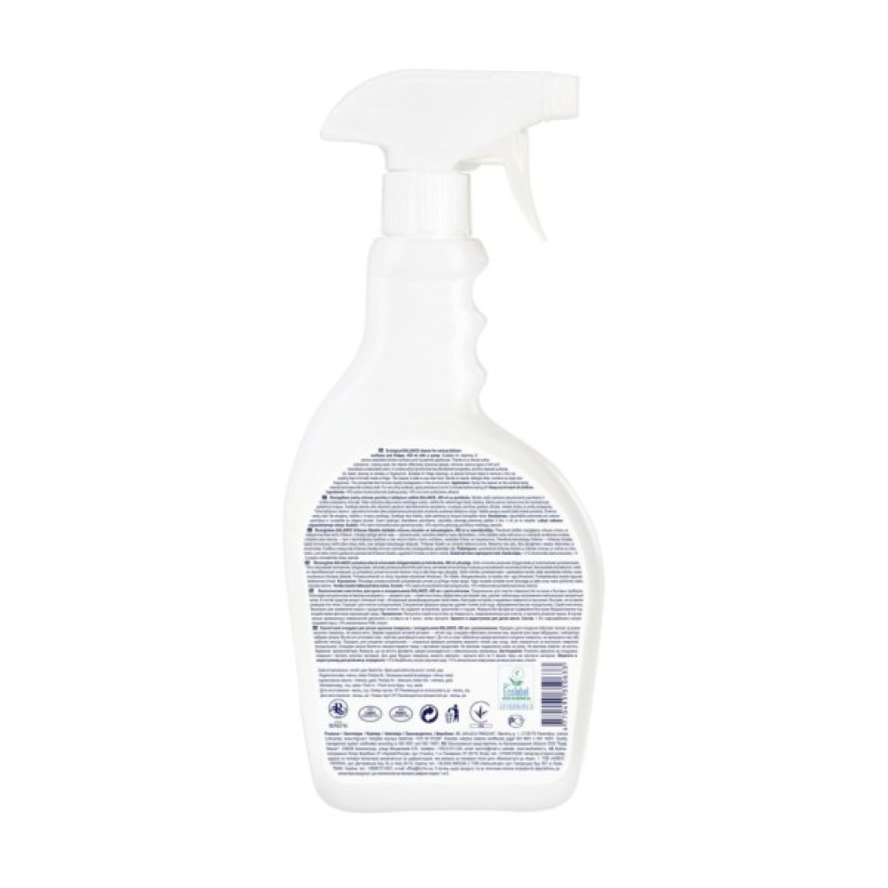 Екологічний очищувач Balance призначений для очищення поверхонь на кухні та побутової техніки. Завдяки натуральному активному інгредієнту – харчовій соді, очищувач ефективно розчиняє жир, видаляє різні види забруднень та нейтралізує небажані запахи. Засіб містить етиловий спирт, який має дезінфікуючі властивості. До того ж спирт забезпечує швидке висихання очищених поверхонь, не залишаючи розводів та відбитків пальців. Підходить для очищення холодильників - спеціальна формула допомагає видалити тонкий льодовий шар, який утворюється на внутрішніх поверхнях холодильника.