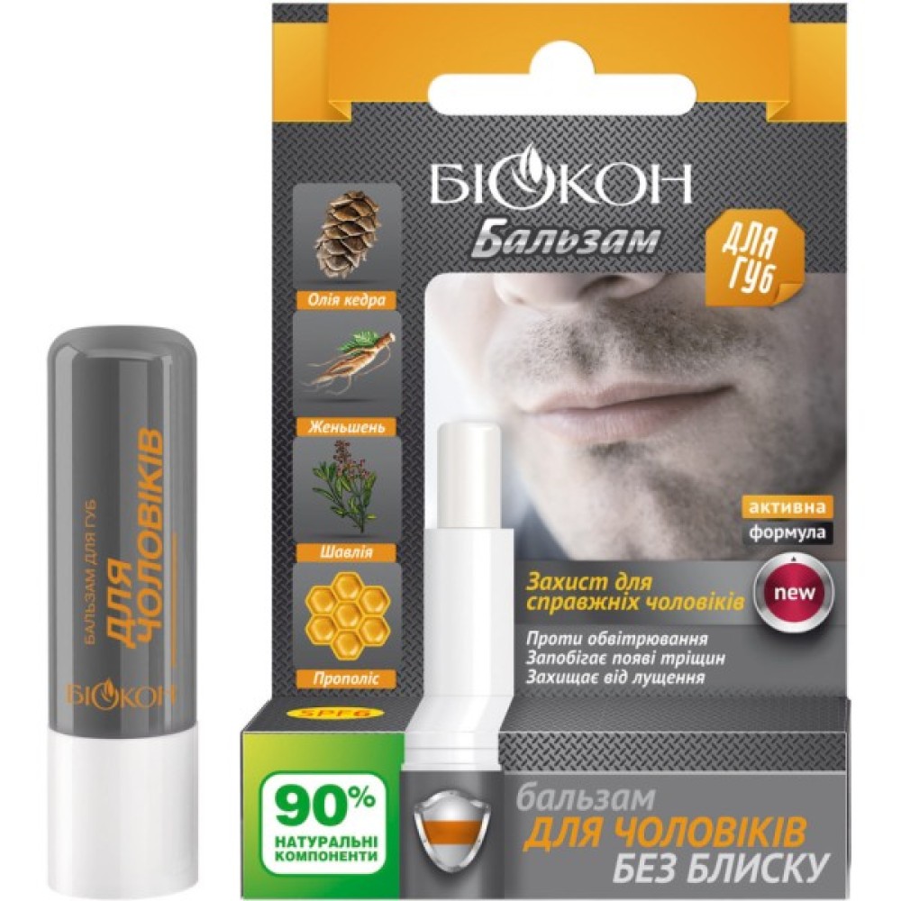 Представляємо вашій увазі чудовий чоловічий бальзам для губ, випущений відомою компанією «Біокон». Засіб чудово захищає уста від впливу сильного вітру та холоду. Також продукт ефективно пом'якшує шкіру, зволожує та живить покрив, сприяючи загоєнню дрібних ранок і тріщин. Засіб було розроблено спеціально для чоловіків. Бальзам легко наноситься, не залишаючи на губах липкої плівки. Легкий свіжий аромат цього продукту доватиме вашому образові таємничості. Завдяки екстракту алое, яким збагачено бальзам, ваші губи завжди матимуть красивий чуттєвий вигляд.