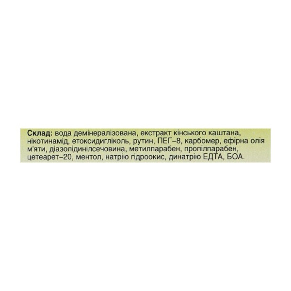 Представлений продукт має охолоджувальну, розслаблювальну і відновлювальну дію. Екстракт кінського каштана зміцнює стінки судин, покращує кровообіг, знімає набряк і прибирає запальні процеси. Ефірна олія м'яти служить чудовим болезаспокійливим засобом, допомагає зменшити відчуття втоми й надати енергії перед новим насиченим днем.