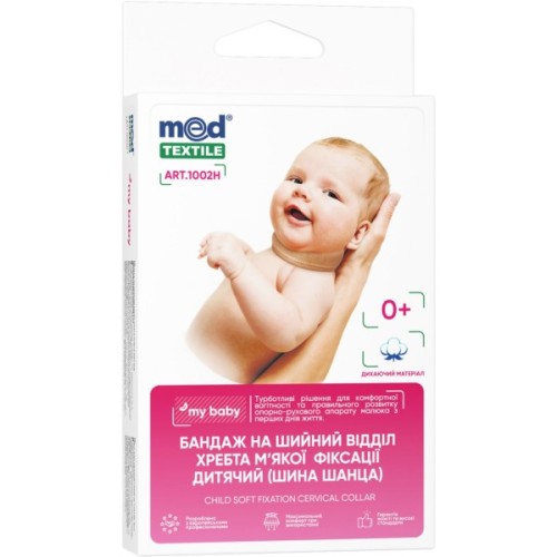 Дитячий бандаж на шийний відділ (шина Шанца) м'якої фіксації утримує голову немовляти у правильному положенні, забезпечує розвантаження м'язово-зв'язкового апарату шиї та шийних хребців та режим спокою та зігрівання. Використовується при пологовій спінальній травмі, травмах шийного відділу хребта та порушеннях мозкового кровообігу у новонароджених дітей, слабкості м'язів шиї, установчій кривошиї, синдромі підвищеної нервно-рефлекторної збудливості, синдромах рухових розладів та синдромі «короткої» шиї.
