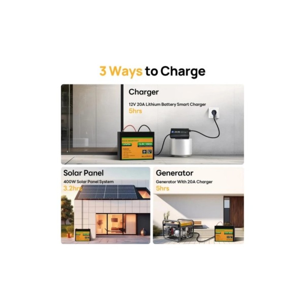 Батарея LiFePo4 Eco-Worthy 12.8V 100Ah LCD (Eco-Worthy-12100bt)