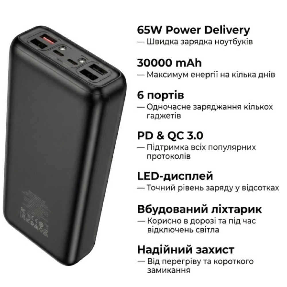 Power Bank Hoco DB81 Apollo PD65W 30000 mAh Black — максимум енергії для ваших пристроїв