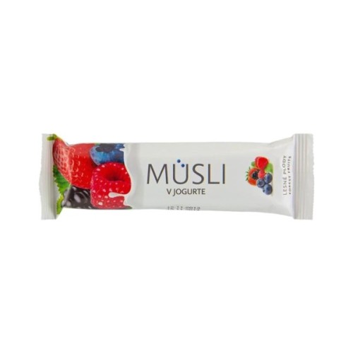 Склад:йогуртова глазур (цукор, рослинна олія, сухий йогурт, суха cироватка, сухе знежирене молоко, лецитин, натуральний ароматизатор йогурту, лимонна кислота), яблучне пюре, ягідний концентрат, витяжки зернових культур (кукурудза, пшениця, рис), цукор, сушені яблука, мед, йогуртовий порошок, рослинний жир, сироп глюкози, вівсяні та пшеничні пластівці, мальтодекстрин, пектин (Е 440), сорбіт (Е 420), гліцерин (Е 422), лецитин (Е 322), ароматизатор натуральний зі смаком лісових ягід.