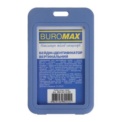Вертикальний бейдж - ідентифікатор від BUROMAX – незамінний помічник в ідентифікації особистості на різних заходах (семінарах, конференціях, виставках тощо) з великою кількістю учасників! Окрім цього, ідентифікатори BUROMAX зараз активно використовуються у школах та ВНЗ для допомоги викладачам та персоналу закладу у ідентифікації учнів. В офісах, бізнес-центрах та компаніях використовують бейджі для ідентифікації співробітників, носіння пропусків чи магнітних ключів. Він чудово підійде для зберігання транспортної картки, проїзного або учнівського квитка тощо.