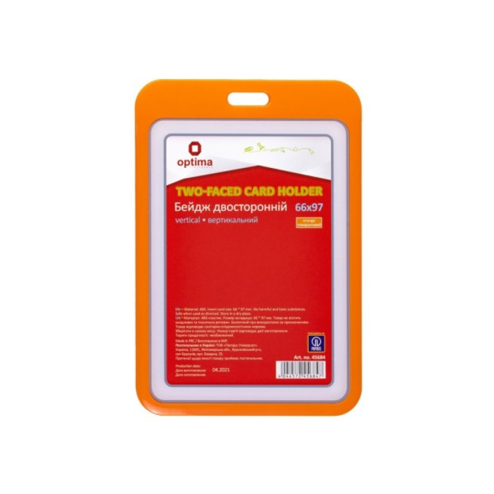 Бейдж вертикальний, двобічний; преміум'якості, розмір вкладки 66х97 мм, широка колірна гама дає змогу підібрати бейдж згідно з корпоративним кольором; використовуються під час проведення конференцій, обслуговуючим персоналом (продавці, офіціанти, консультанти), працівниками підприємств.