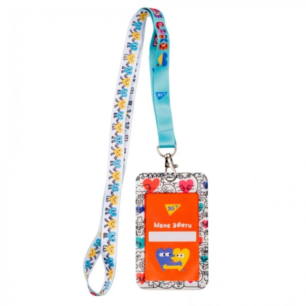Бейдж на стрічці YES. Призначений для учнівського, ідентифікаційної карти, перепустки, проїзного, абонемента та інших підтверджуючих особистість документів невеликого розміру. Бейдж можна носити на шиї, в кармані, рюкзаку, сумці.