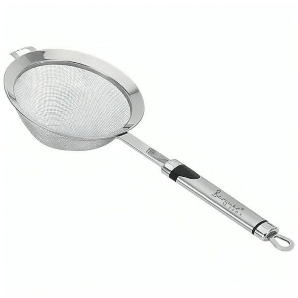 Сіто Berner Gizmo (BG-3269) виготовлено з нержавіючої сталі і є універсальним інструментом на кухні. З його допомогою можна просіювати борошно, посипати десерти цукровою пудрою або какао, а також використовувати як шумівку.