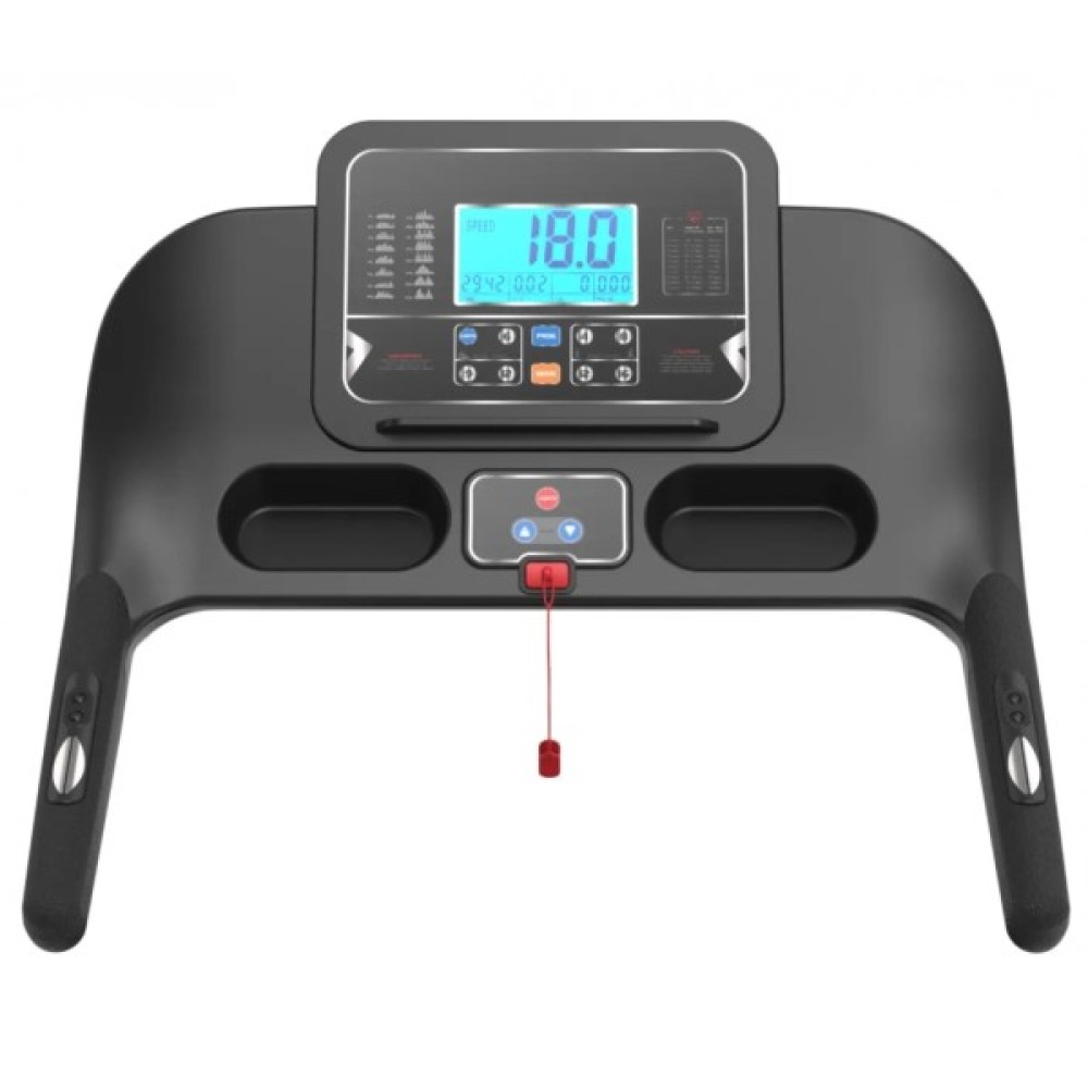 Доріжка оснащена двигуном потужністю 2,5 кінських сил, що забезпечує стабільну і плавну роботу навіть при інтенсивних навантаженнях. Модель розрахована на користувача вагою до 130 кг, завдяки міцній рамі та надійній конструкції.