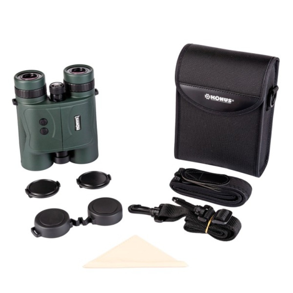 KONUS KONUSRANGE-2 10x42 — водонепроникний тактичний бінокль із вбудованим лазерним далекоміром і максимальною дальністю вимірювань — 1200 метрів. Має міцне металеве шасі з чіпким, погумованим покриттям. Модель підходить для використання з воєнною метою, і стане незамінним помічником під час виконання простих тактичних завдань.