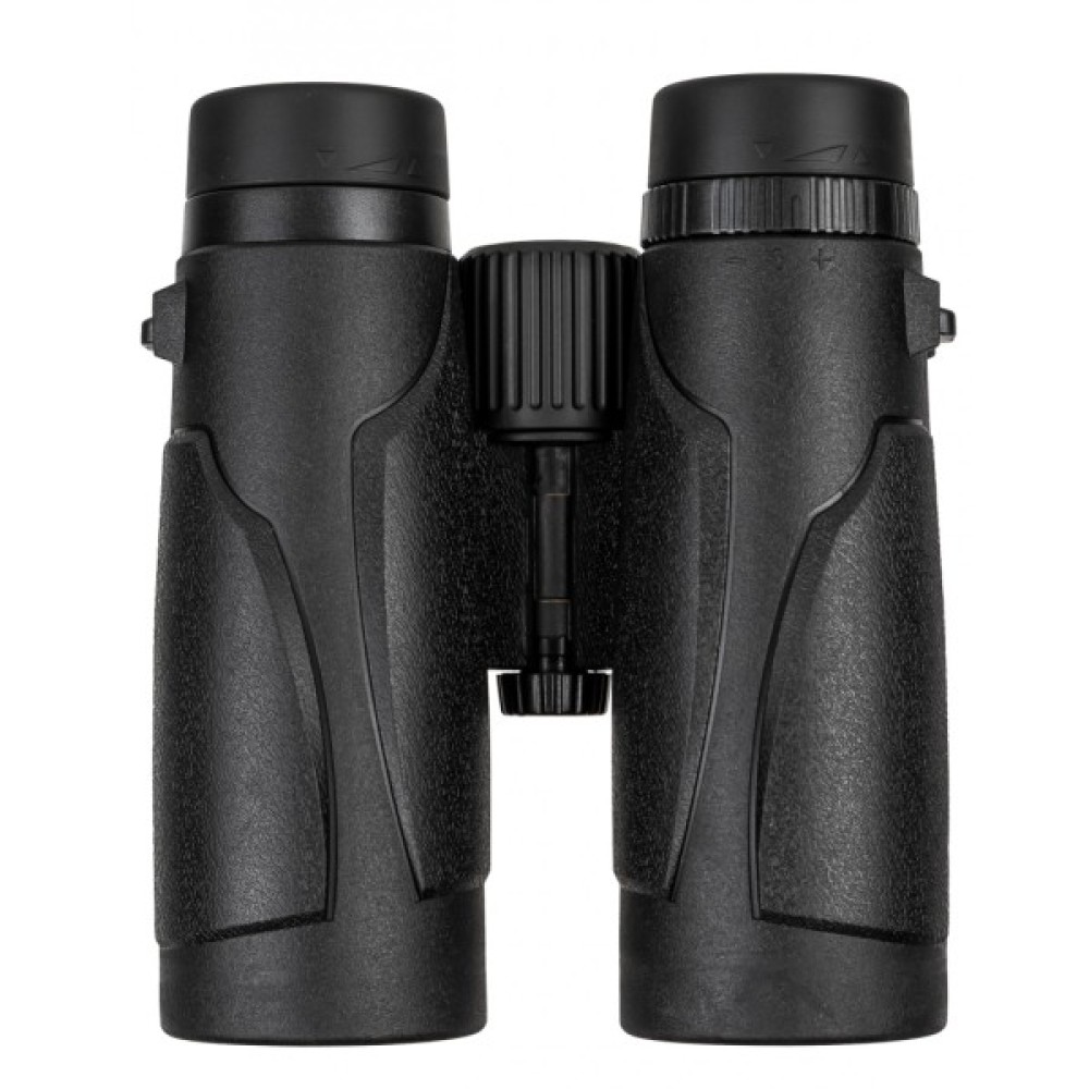 Корпус бінокля виготовлений з армованого полікарбонату – легкого, але міцного матеріалу, здатного витримувати повсякденні навантаження під час експлуатації в польових умовах. Для комфорту користувачів, у тому числі тих, хто носить окуляри, передбачені поворотно-висувні наочники типу Twist-Up, які дозволяють легко налаштувати оптимальну відстань від окулярів до очей. Передбачена можливість корекції діоптрій в діапазоні від -5 до +5 на правому окулярі. Важливою перевагою є високий рівень захисту IP67, це означає повну пилонепроникність та водонепроникність приладу.