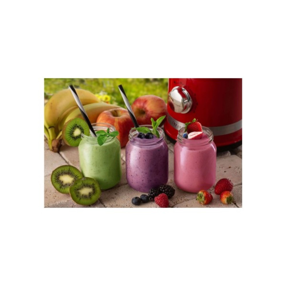 Корпус виконаний з комбінації скла та пластика, що надає приладу сучасного вигляду і забезпечує довговічність. Блендер оснащений місткою чашею об'ємом 1500 мл, в якій легко готувати смузі, коктейлі чи крем-супи. Завдяки наявності подрібнювача, ви зможете швидко нарізати овочі чи фрукти для салатів і страв. Чаша для смузі – це додатковий аксесуар, який дозволяє готувати солодкі напої буквально за лічені хвилини.