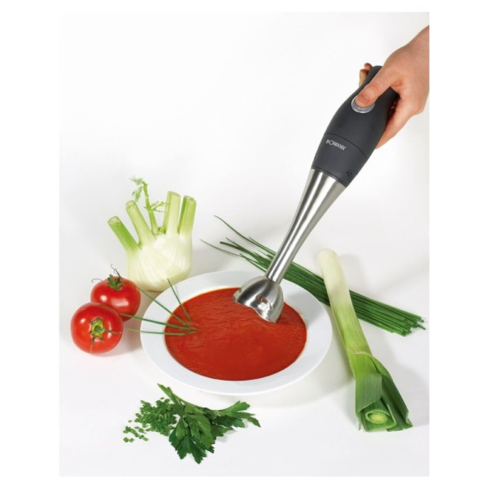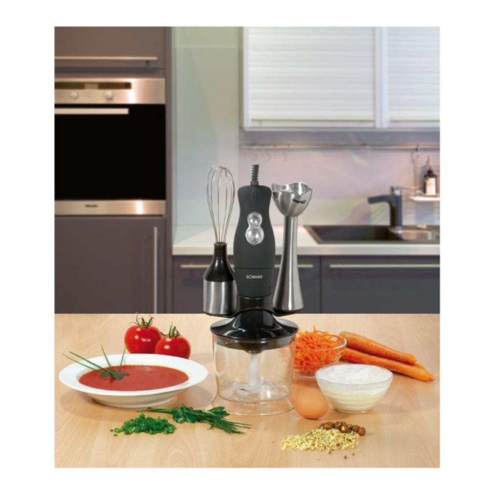Блендер Bomann SMS 349 СВ (SMS349СВ) - це ідеальне поєднання функціональності, естетики та німецької якості. Призначений для модернізованих кухонних приміщень, цей занурювальний блендер здатний полегшити щоденні кулінарні завдання завдяки своїм багатофункціональним можливостям.